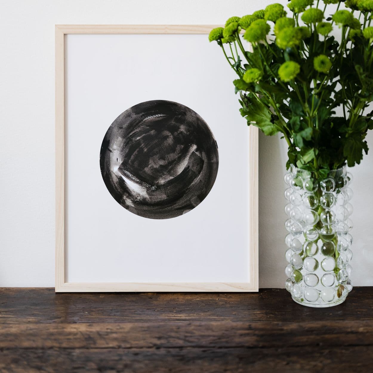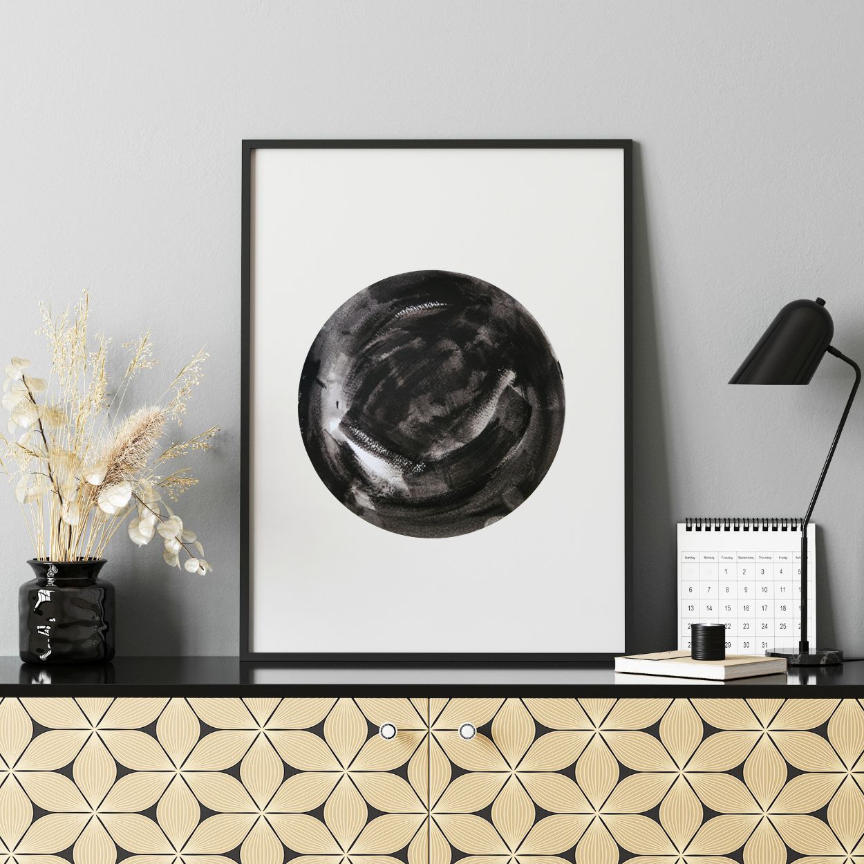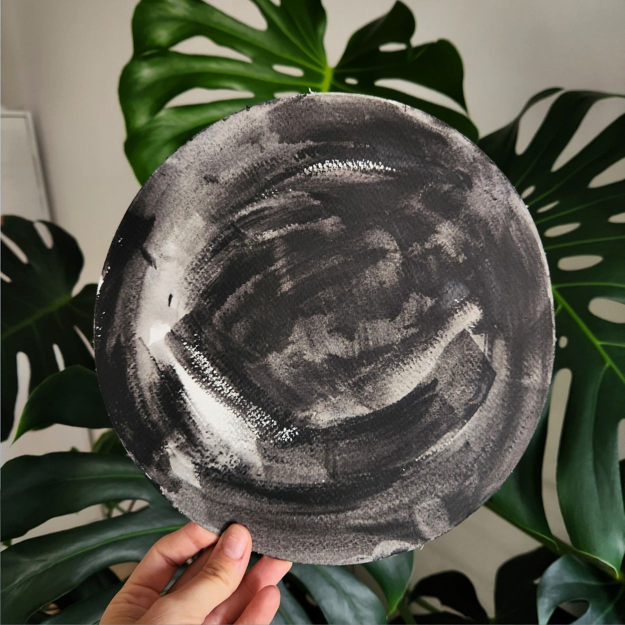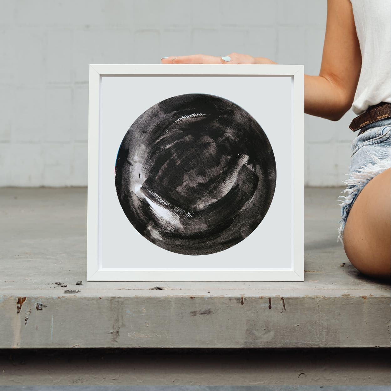 ציור מקורי אבסטרקטי, עגול בשחור לבן. אמנות מינימליסטית עבודת יד על נייר עבה עגול ללא מסגרת, מה שמאפשר לך להתאים אותו לעיצוב ביתך, בעזרת מסגרת שמתאימה לך. מומלץ לקחת השראה מהדמיות באתר.