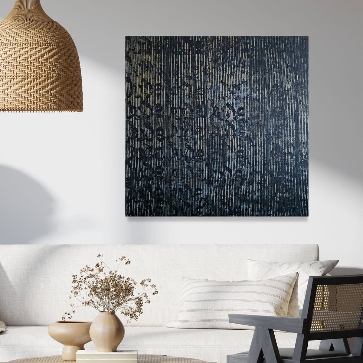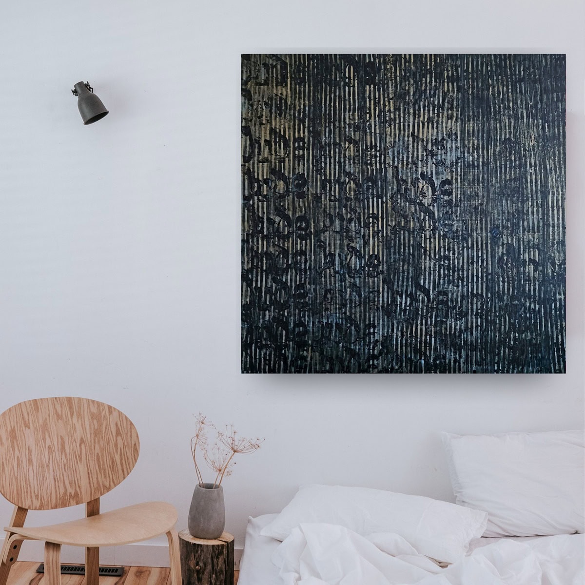 ציור אבסטרקטי עוצמתי המבטא את הכאב והזיכרון הקולקטיבי של העם היהודי בעקבות האירועים ההיסטוריים והאישיים שחווינו. נוצר בעקבות האסון שקרה כאן בשבעה באוקטובר והחיבור הבלתי נמנע לטלאי הצהוב ולסמלים מהשואה. המילה "Jude" שולבה בתוך היצירה, אך הפעם עטופה בזהב, סמל לתחייה, עמידות וכוח הנפש של העם היהודי. חלק מסדרה חדשה המבוססת על סמלים כמו מגן דוד, חמסות, ומילים כמו "אהבה" ו"יהודי", הציור משקף את החיפוש אחר תקווה ומשמעות בתוך הכאוס. היצירה בוצעה בטכניקה ייחודית בצבעי אקריליק על קנבס איטלקי איכותי, בגוונים של שחור, תכלת וזהב. היא מתאפיינת בשכבות עשירות היוצרות אפקט רב-ממדי ומשתנות בהתאם לזוויות האור, מה שמעניק לציור נוכחות דרמטית וחזקה בחלל. הדפנות של הציור צבועות אף הן, כך שאין צורך במסגרת נוספת, והוא מוכן לתלייה ישירה.