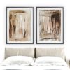 סט ציורי אבסטרקט, ציור מופשט, מקורי בשני חלקים בגווני חום ובז'. תחושת אווריריות וקלילות זה המאפיין העיקרי של היצירה. סט ציורים זה ישתלב בכל מיני סוגי מסגרות ומתאים לתלייה במגוון חללים. המידה מתייחסת נטו למידות הציור, ללא פספרטו ומסגרת, הציור אינו ממוסגר. רוחב המיטה בהדמיה כ 140ס"מ.