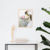 פורטרט של אישה עם בלון מסטיק ורוד, זהו הדפס, העתק של ציור מקורי שלי שנמכר, אמנות שתתאים למגוון חללים. אפשר לשלב בחדר שינה, סלון, מטבח וגם במשרד או בקליניקה. תבחרו גודל הדפס רצוי מהוריאציות. הרפרודוקציה מודפסת על נייר ללא שוליים לבנים ונשלחת מגולגלת בתוך גליל קשיח ללא מסגרת.