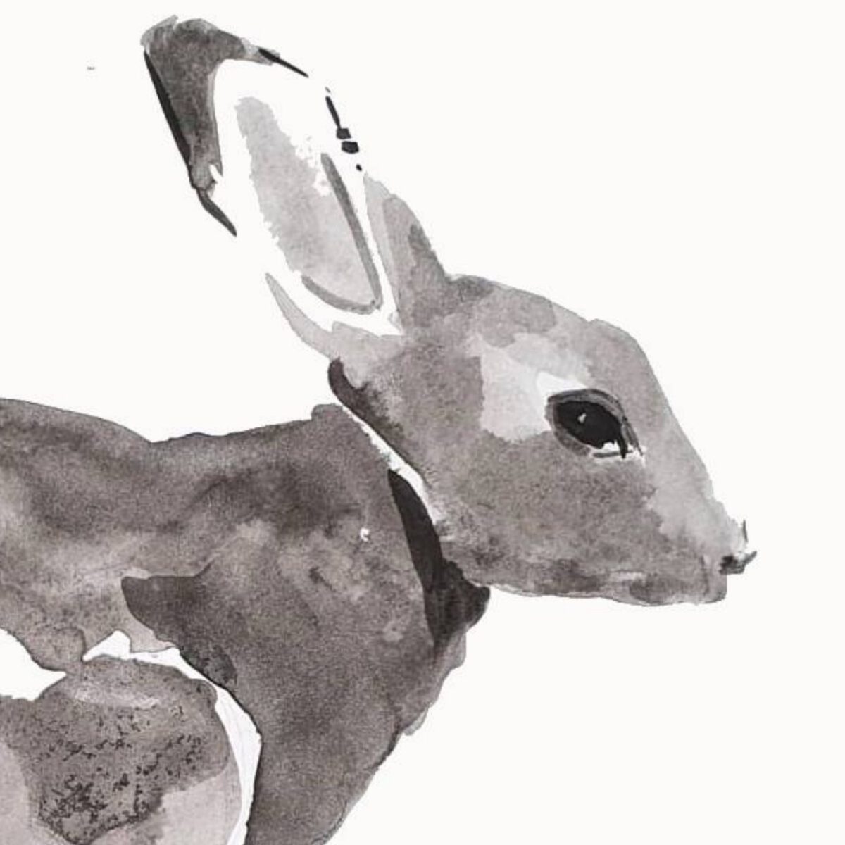 ציור ארנב מקורי דיו על נייר, עבודת יד. יצירה מינימליסטית בשחור לבן לאוהבי בעלי חיים מתאים במיוחד לבית בעיצוב נורדי או מינימליסטי.