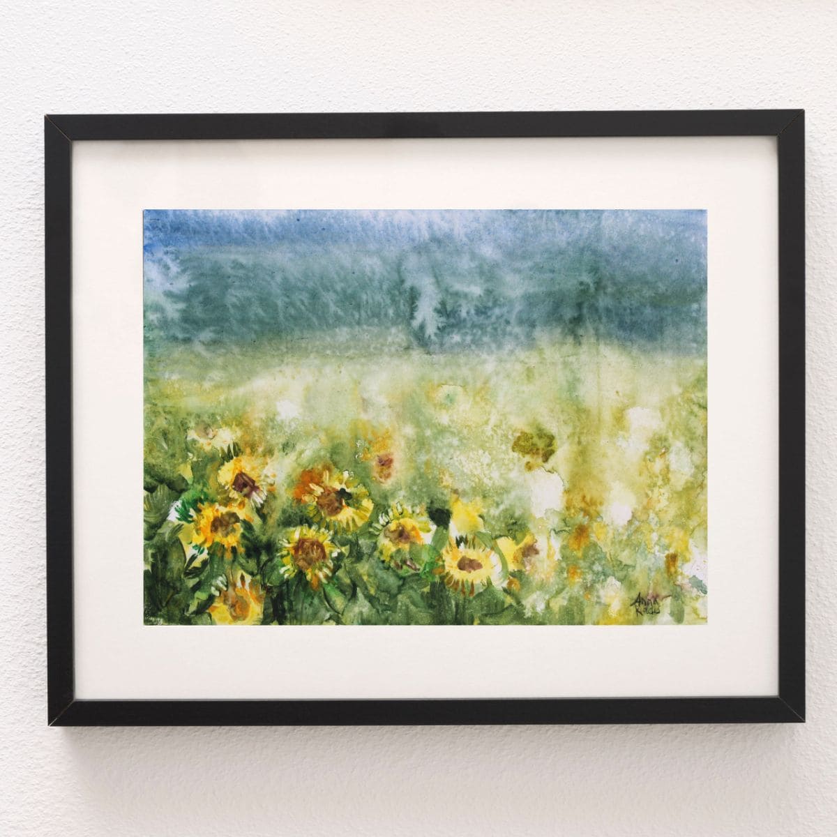 הדפס ציור על נייר של שדה חמניות בסגנון אבסטרקטי בצבעי מים. הציור המקורי הגיע לפיינליסטים בתחרות צבעי מים ארצית וכרגע מוצג בתערוכה בסלובניה. תבחרו גודל הדפס רצוי מהוריאציות, הרפרודוקציה מודפסת על נייר ללא שוליים לבנים ונשלחת מגולגלת בתוך גליל קשיח ללא מסגרת.