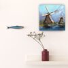 ציור מקורי של תחנת רוח הולנדית ביום בהיר, המודגש בעזרת שכבות צבע עשירות ומשיכות מכחול נראות לעין, שיוצרות תחושת תנועה ואווירה כפרית. הציור מבוצע על קנבס איכותי בעבודת יד. הציור מוכן לתלייה ומתאים למגוון חללים.