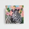 ציור מקורי קטן של זברה על רקע פרחים צבעוניים בסגנון אבסטרקט. יצירה ייחודית זו בוצעה בצבעי אקריליק על קנבס איטלקי איכותי, עם שוליים צבועים בגוון ירוק כהה להשלמת האסתטיקה. השילוב של הפרחים הרכים עם הדמות הבולטת של הזברה יוצר ניגוד מרתק של טבע פראי ואלמנטים עדינים. הציור יכול להשתלב במגוון חללים ומעולה לתלייה על הקיר או להצבה על מדף או שולחן עבודה ליצירת אווירה צבעונית ואמנותית.